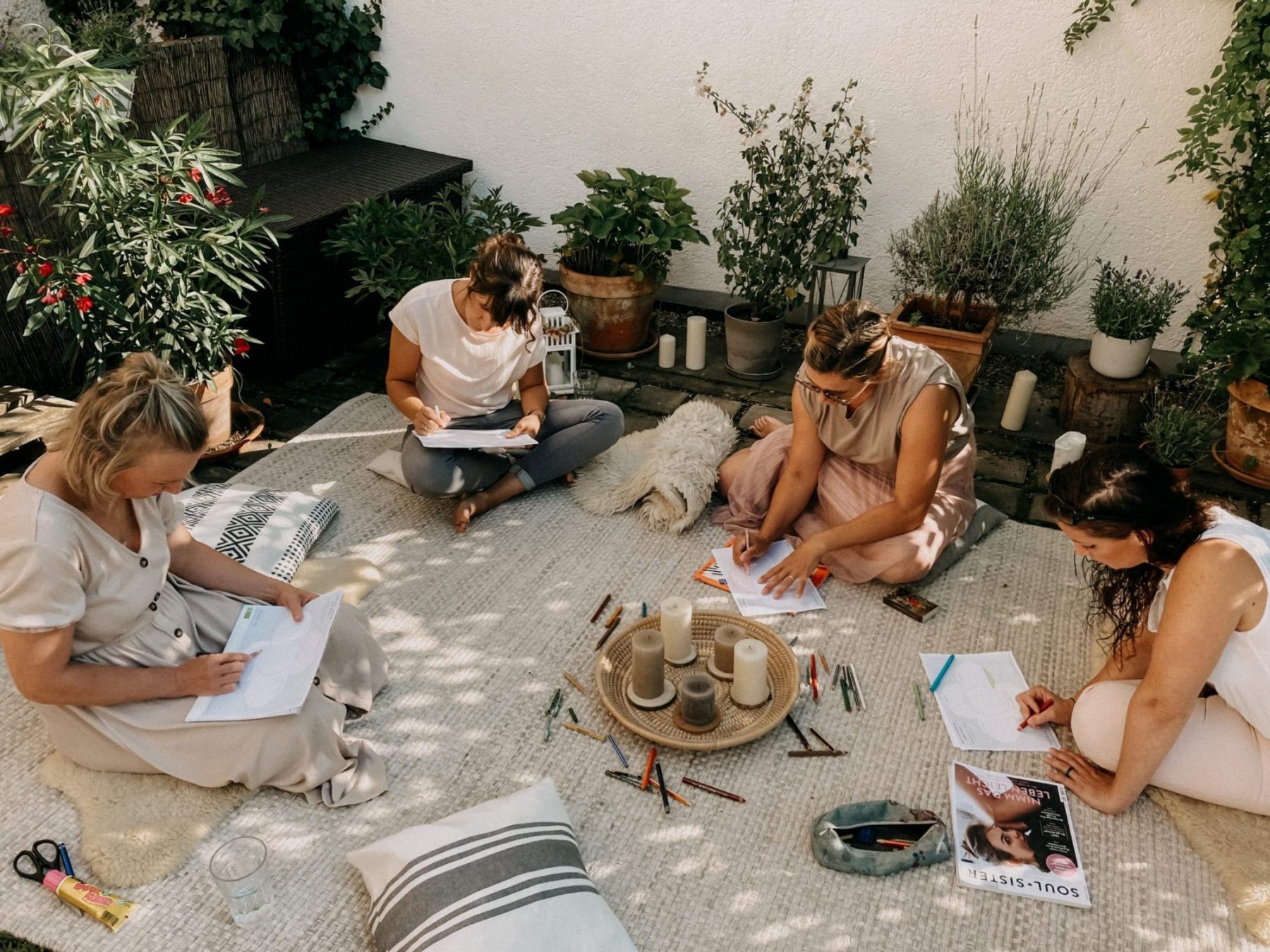Wir lassen Formen, Farben, Bilder sprechen und machen unsere Gefühle sichtbar. Es geht nicht darum, besonders kreativ oder künstlerisch zu sein, sondern der Intuition zu vertrauen und diesem „Inner Glow“ Ausdruck zu verleihen. Es gibt kein Richtig und kein Falsch, alles darf fließen, alles darf sein. Und du wirst überrascht sein, was sich zeigt, wenn du deinem Gefühl Raum und Gehör schenkst.