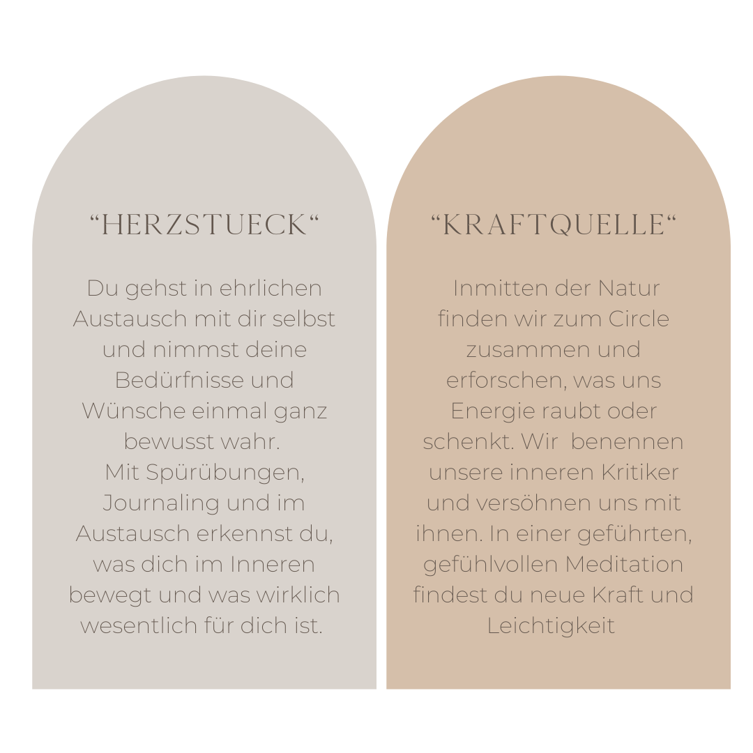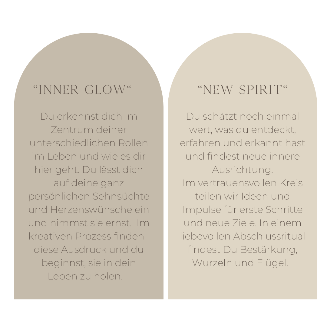 Wir spüren hin und nehmen ernst, was sich zeigt. Wir erkennen, was gerade wesentlich für uns ist und was wir tun können, um unser Leben daran auszurichten. Wir schauen nach innen und bringen unsere Herzenswünsche nach außen. Für neue Perspektiven und eine klare Ausrichtung. Für ein Lebensgefühl, dass zu dir passt!